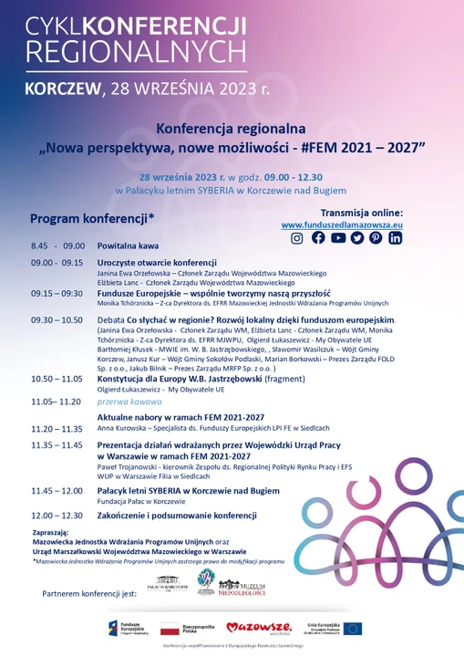 Tegoroczna edycja wydarzenia odbędzie się pod hasłem "Nowa perspektywa, nowe możliwości - #FEM 2021 – 2027”. Konferencja będzie doskonałym momentem do promowania projektów zrealizowanych w ramach Regionalnego Programu Operacyjnego Województwa Mazowieckiego oraz do zaprezentowania planów na przyszłość.