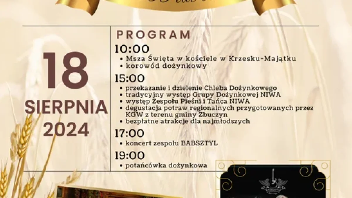 10:00 - msza święta w kościele w Krzesku-Majątku oraz uroczysty korowód dożynkowy