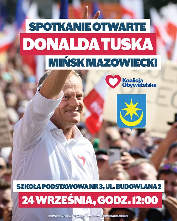 Spotkanie będzie miało charakter otwarty. Donalda Tuska będzie można spotkać i posłuchać w Szkole Podstawowej nr 3 przy ulicy Budowlanej 2 w Mińsku Mazowieckim.