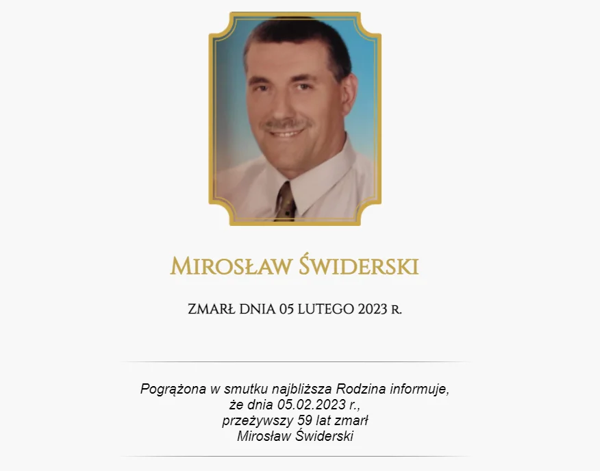 Msza pogrzebowa odbędzie się 8 lutego o 13:00 w kościele pw. Nawrócenia św. Pawła Aposotoła w Skórcu. Po eucharystii ciało zmarłego zostanie złożone na cmentarzu parafialnym.