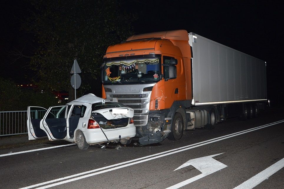 Ranne zostały dwie osoby, czyli pasażerowie osobówki. Policjanci ustalają okoliczności zdarzenia.