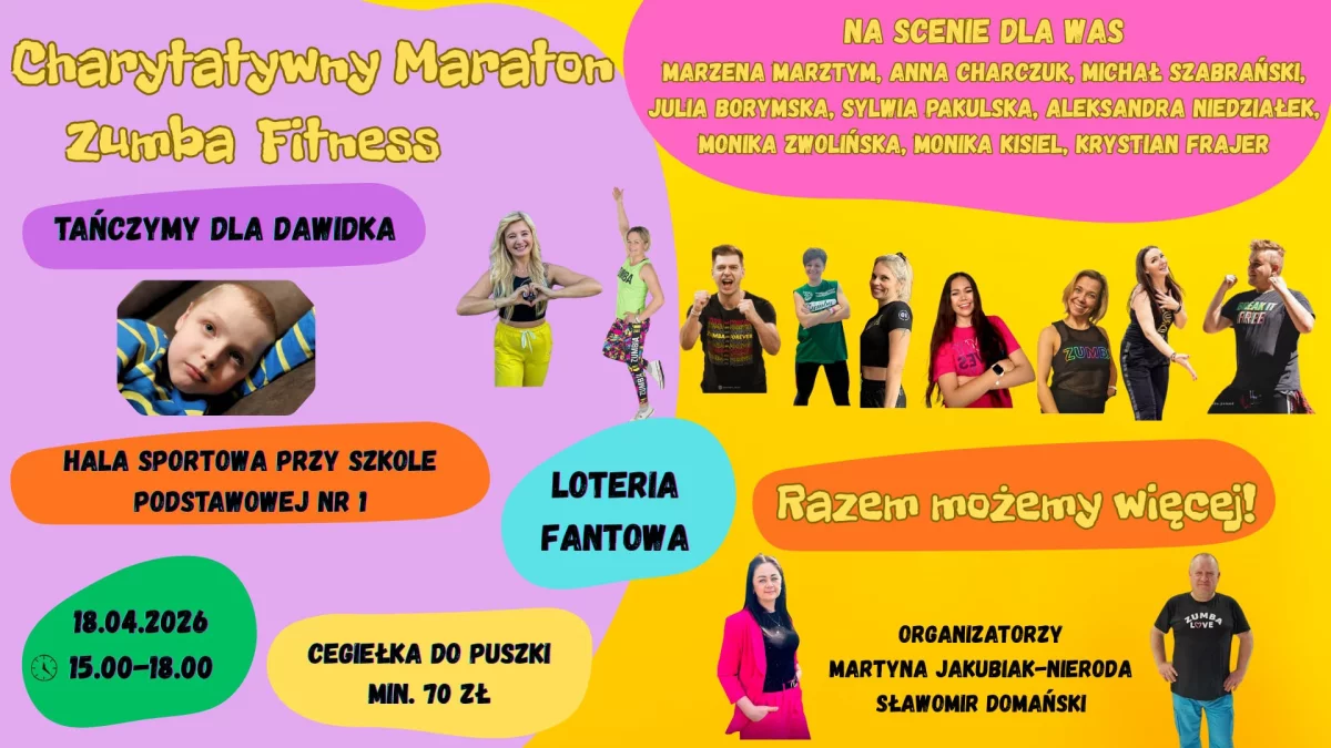 Już 18 kwietnia spotykamy się, aby wspólną energią, ruchem i ogromnymi sercami wesprzeć Dawidka. To będą 3 godziny niesamowitej zabawy, endorfin i prawdziwej mocy pomagania! 💥💃