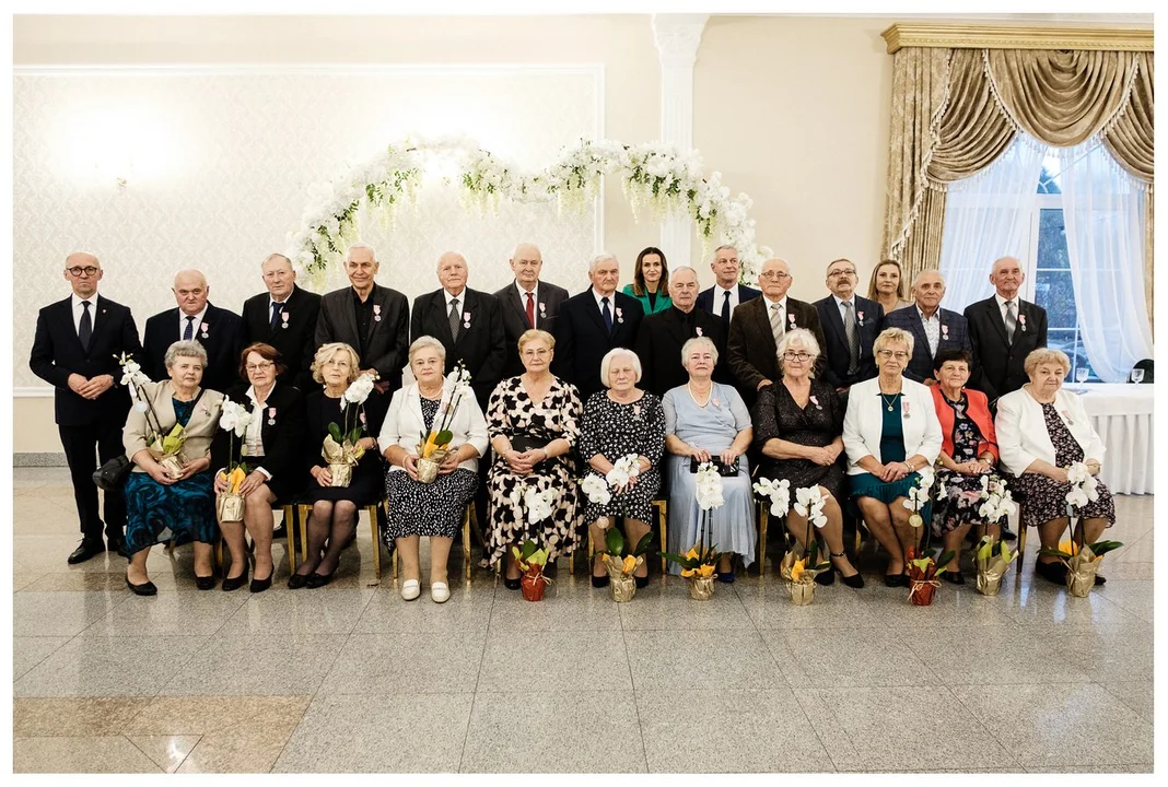 Podczas niej wójt Mariusz Osiak odznaczył jubilatów Medalami za Długoletnie Pożycie Małżeńskie nadanymi im przez prezydenta. Poza medalami, małżonkowie otrzymali upominki i kwiaty oraz serdeczne życzenia od wójta i jego zastępcy Janusza Jezierskiego oraz od kierownika USC Anny Zemło.