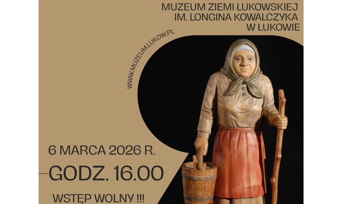 Wernisaż wystawy pt. „60 lat minęło... Twórczość Łukowskiego Ośrodka Rzeźby Ludowej” odbędzie się 6 marca 2026 roku (piątek) o godzinie 16.00 w gmachu Muzeum Ziemi Łukowskiej im. Longina Kowalczyka w Łukowie.