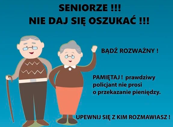 Policjanci przypominają osobom starszym o oszustach, którzy wykorzystują ludzką ufność, otwartość i szczere intencje: Pamiętajmy, że ich pomysłowość i przebiegłość jest nieograniczona. Pod pozorem okazji, nieszczęścia, podając się za krewnych, pracowników społecznych, urzędników lub policję wprowadzają w błąd swoje ofiary, zyskują ich zaufanie i okradają! Tylko rozsądek i rozwaga w tym przypadku mogą uchronić nas przed staniem się ofiarą naciągaczy.