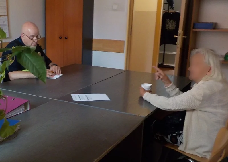 Zdenerwowana kobieta nie potrafiła podać swojego adresu. Na prośbę strażników, przeszukała swoją torbę, w której znalazła karteczkę z numerem telefonu do syna. Strażnicy skontaktowali się z rodziną seniorki, która obiecała, że ktoś przyjedzie po nią. W oczekiwaniu na przyjazd bliskich funkcjonariusze podjęli działania, aby uspokoić kobietę – zrobili jej herbatę i przez blisko dwie godziny rozmawiali z nią, wysłuchując jej wspomnień z czasów okupacji oraz pracy przy odgruzowywaniu Warszawy po wojnie. Dodatkowo naprawili jej okulary, z których wypadło szkiełko.