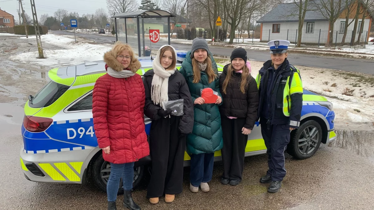 Uczennice wręczały kierowcom symboliczne kartki w kształcie serc.