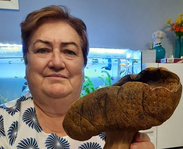 Ostatnio, w okolicach swojego domu w Krzywdzie, Pani Hania natrafiła na wyjątkowo imponujący okaz. Wracając przez pobliską łąkę, odkryła ogromnego prawdziwka, który po dokładnym zważeniu okazał się ważyć imponujące 1,02 kg.