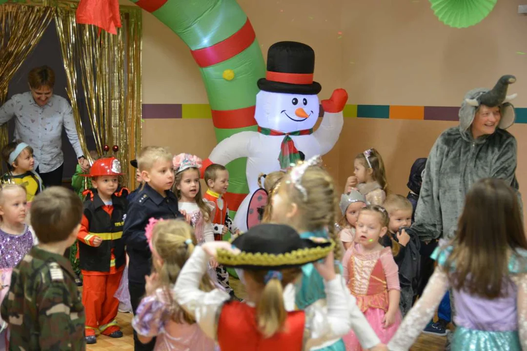 Dzieci były tak świetnie przebrane, że niejedno trudno było rozpoznać. Każdy przedszkolak za pomoca stroju zmienił się w zaplanowaną postać. Były księżniczki, byli policjanci, żołnierze i supermani. Zabawę prowadził zgrany duet- „Kolorowy świat animatorek”, który porwał dzieci do tańca i zabawy. Na zakończenie tego balowego dnia dzieci odwiedził jeszcze niezapowiedziany gość - Pluszowy Mis, który zatańczył nawet zumbę poprowadzoną przez Sylwię-Fit Dance Forma.