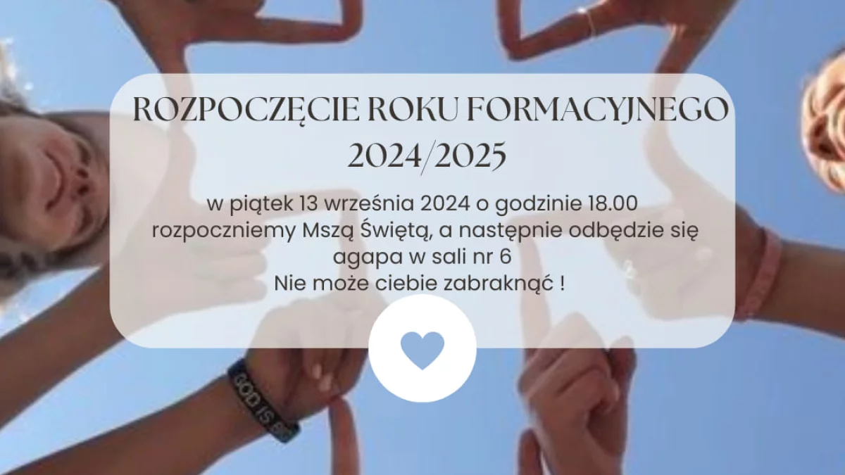 Oaza Przemienienie Łuków już dziś (piątek 13.09) rozpoczyna rok formacyjny 2024/2025. Spotkanie rozpocznie się od mszy świętej (godz. 18) w parafii Przemienienia Pańskiego w Łukowie, a potem w salce numer 6 odbędzie się agapa.