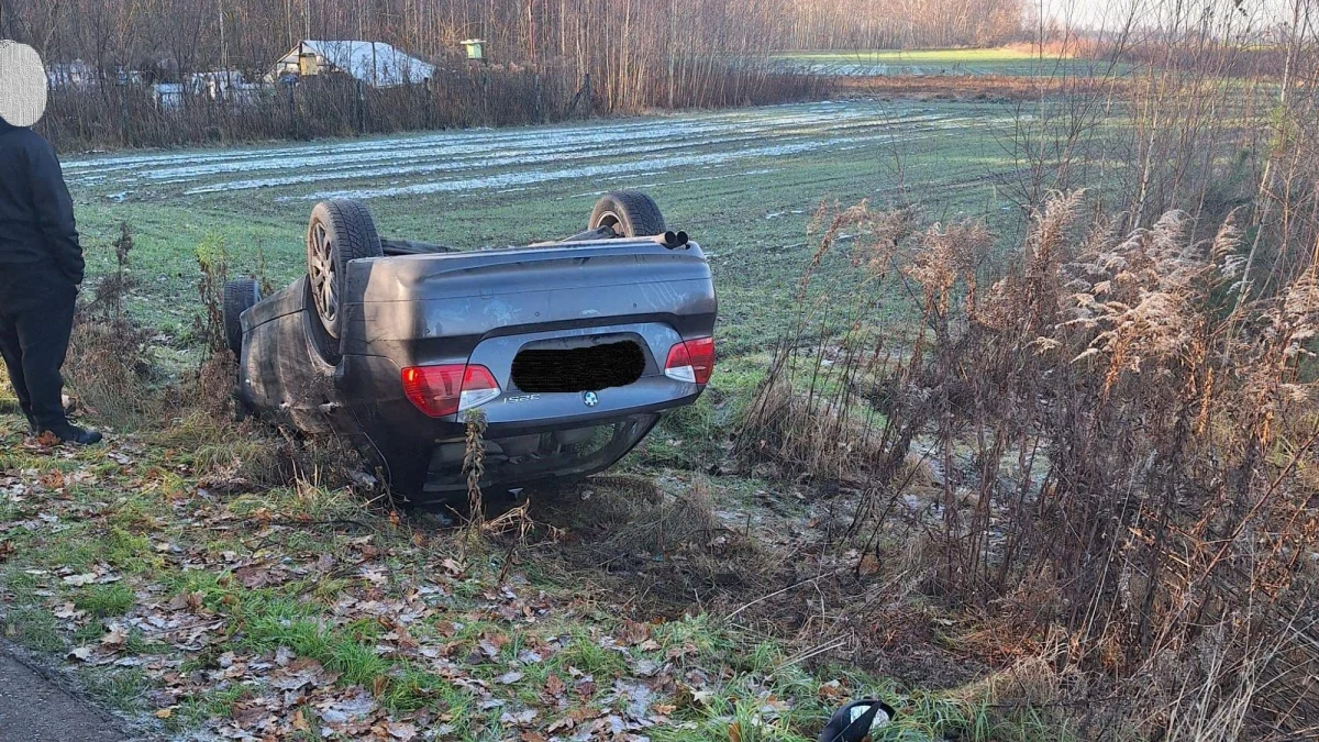 Kierowany przez 48-letnią kobietę samochód osobowy marki BMW wpadł w poślizg, zjechał z jezdni i dachował. Służby zostały powiadomione o wypadku o godz. 9.25.