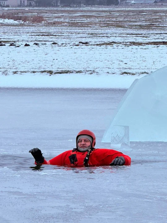 Strażacy przypomnieli sobie również zasady udzielania kwalifikowanej pierwszej pomocy osobom z hipotermią. Warunki pogodowe sprzyjały przeprowadzeniu ćwiczeń – grubość tafli lodu na akwenie, na którym prowadzono szkolenie, przekroczyła 30 cm.