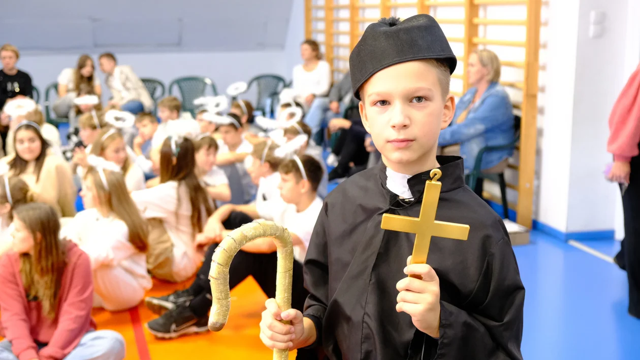 Uczniowie uczestniczyli również w wyjątkowym Balu Wszystkich Świętych. Każdy z nich ubrany był na biało, prezentując atrybuty świętego wybranego dla swojej klasy.