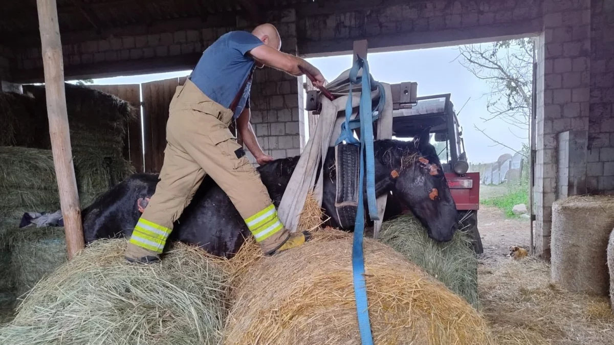 Po przybyciu na miejsce, strażacy przy użyciu pasów podnieśli zwierzę i zabezpieczyli je przed ewentualnym upadkiem. Pomimo niepomyślnych rokowań, klacz udało się uratować.