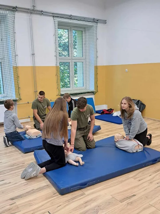 Lekcje poprowadzili Magdalena Smarz- specjalista pielęgniarstwa anestezjologicznego i intensywnej opieki Oddziału Ratunkowego SPZOZ w Łukowie oraz kadeci II klasy wojskowej ZS im. Tatarkiewicza w Radoryżu Smolanym- Szymon Smarz i Szymon Jalowski. Podczas zajęć praktycznych uczniowie mogli poczuć się jak prawdziwi ratownicy. Zostali zapoznani ze sprzętem ratującym życie. Poznali procedury zachowania się w sytuacjach zagrożenia życia.