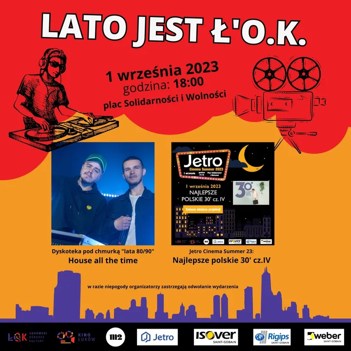 O godz. 18:00 odbędzie się dyskoteka pod chmurką „Lata '80/90". Imprezę poprowadzi House All The Time, czyli duet Kowal & Smyku.