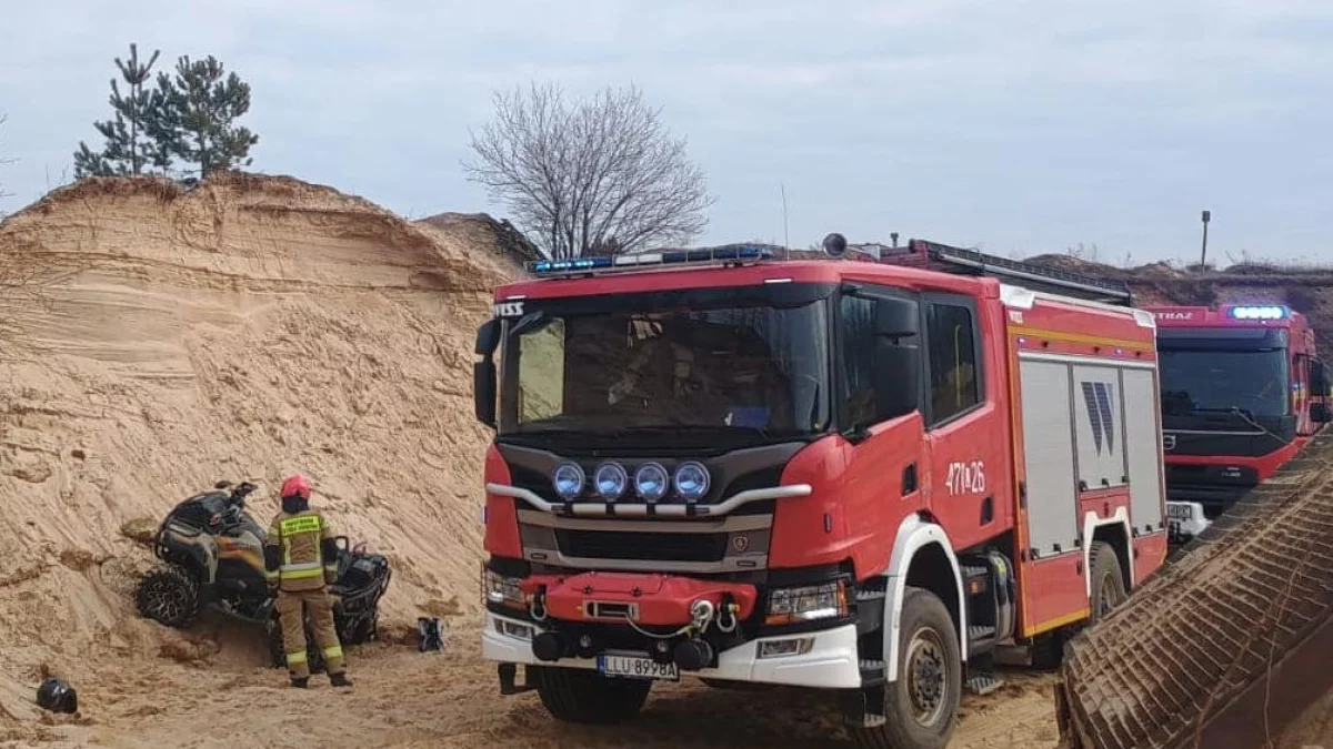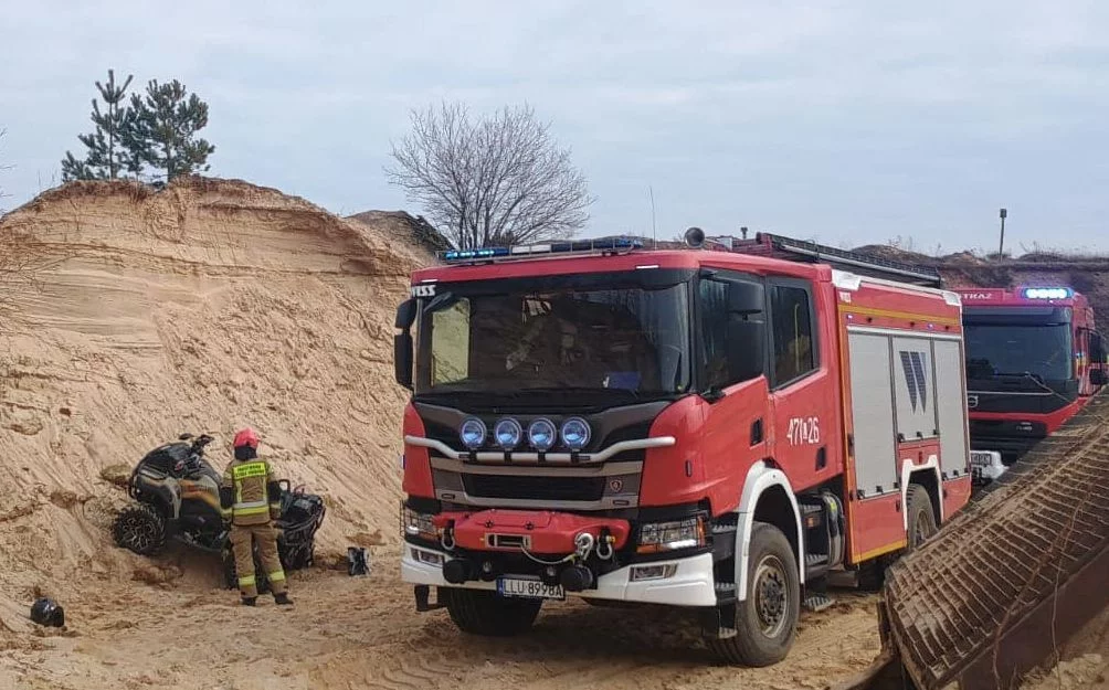 W tym czasie podczas odprawy przed ćwiczeniami praktycznymi z jazdy w trudnym terenie odbywającymi się w Biardach, gm. Łuków strażacy zostali poinformowani przez postronne osoby, że w wyrobisku na sąsiedniej żwirowni doszło do wypadku z udziałem quada. Jedna osoba została poszkodowana. Na miejscu zdarzenia interweniowały trzy samochody JRG Łuków - informuje KP PSP w Łukowie.