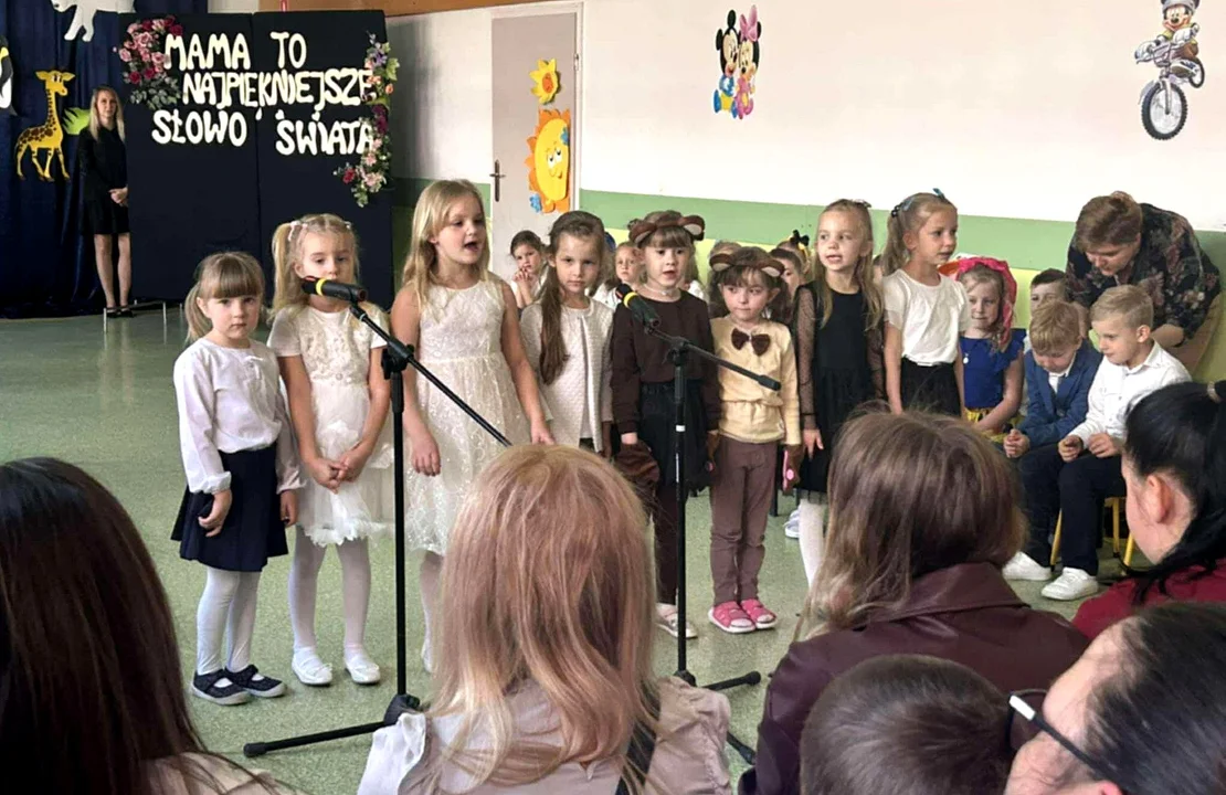 Mali artyści z ogromnym zaangażowaniem złożyli swoim Mamom życzenia poprzez piosenki, tańce, scenki teatralne oraz recytacje – zarówno w języku polskim, jak i angielskim.