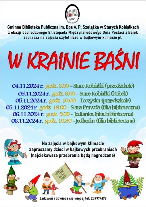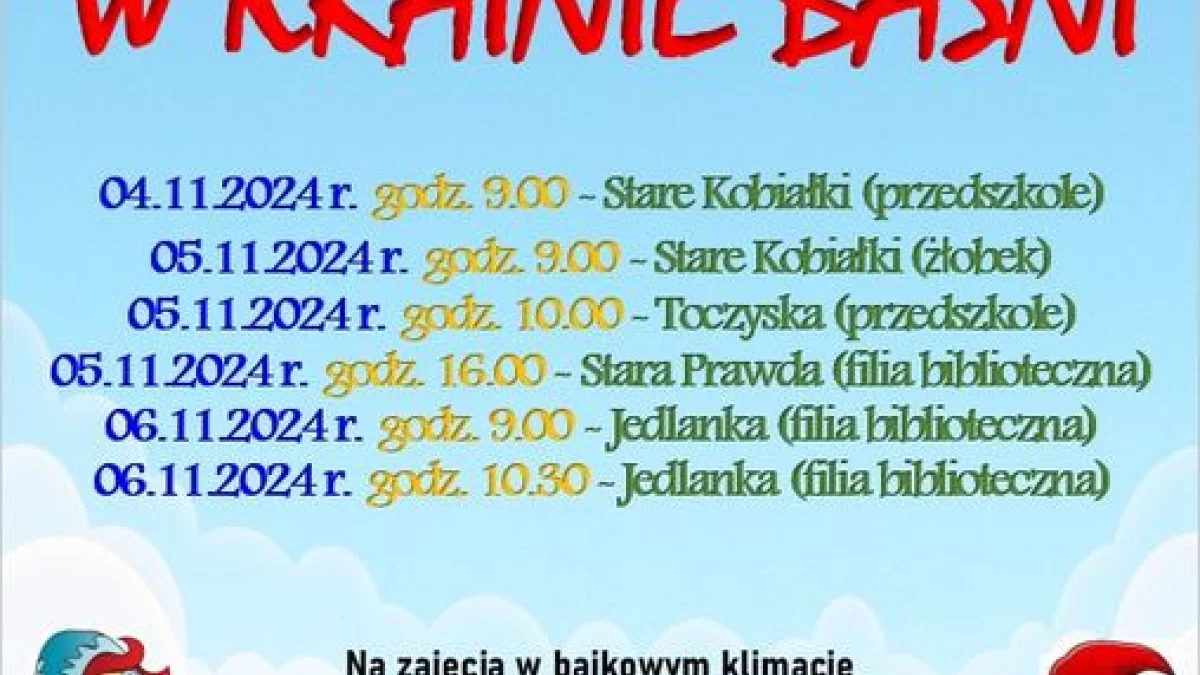 Z tej okazji już od najbliższego poniedziałku biblioteka w Starych Kobiałkach zaprasza dzieci, młodzież i wszystkich miłośników literatury na zajęcia czytelnicze pt. W KRAINIE BAŚNI. Spotkanie przeniesie uczestników w magiczny świat baśni, pełen uwielbianych przez pokolenia postaci, przygód i niesamowitych wydarzeń.