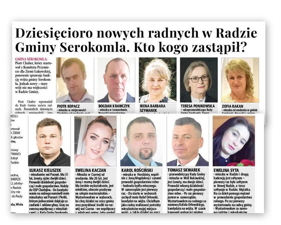 ŁUKASZ KIELISZEK - mieszkaniec wsi Poznań. Ma 31 lat, żonaty, ojciec dwójki dzieci. Prowadzi działalność gospodarczą i małe gospodarstwo. Należy do OSP Charlejów. - Do kandydowania na radnego namówili mnie mieszkańcy wsi Poznań i Pieńki, którym jednocześnie dziękuje za zaufanie i oddane głosy. Liczę na owocną współpracę z mieszkańcami i z Radą Gminy Serokomla – mówi