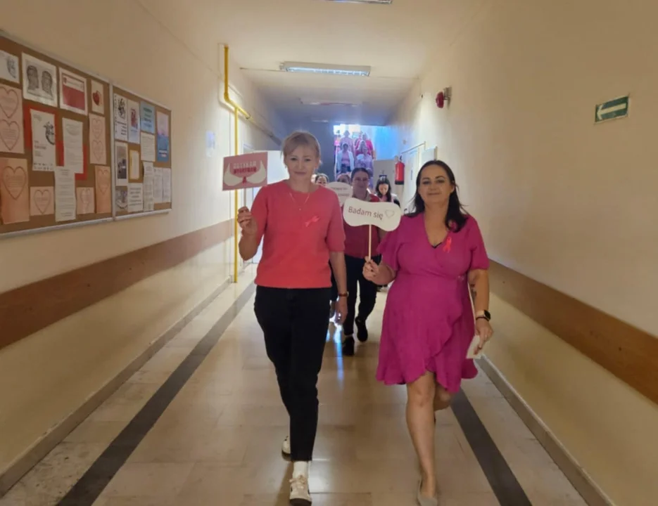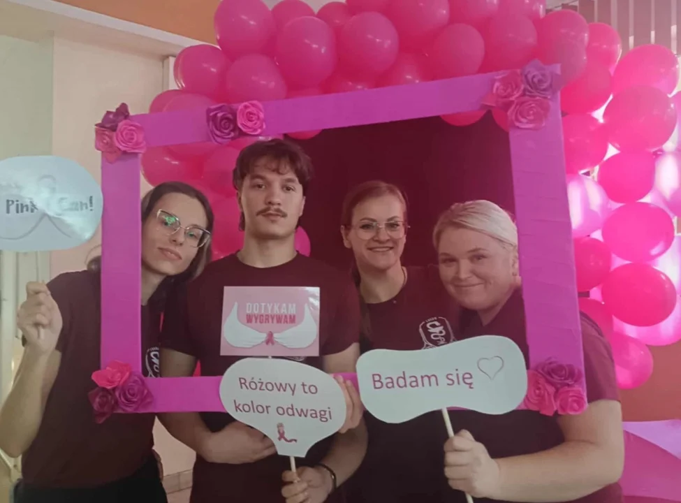 Druga część wydarzenia miała wymiar symboliczny – uczniowie i nauczyciele przeszli szkolnymi korytarzami w „Różowym Marszu”, który przypominał o znaczeniu wczesnej diagnostyki w walce z rakiem piersi. Spotkanie zakończyły pamiątkowe zdjęcia przy ściance motywacyjnej oraz w fotobudce przygotowanej przez Samorząd Uczniowski.