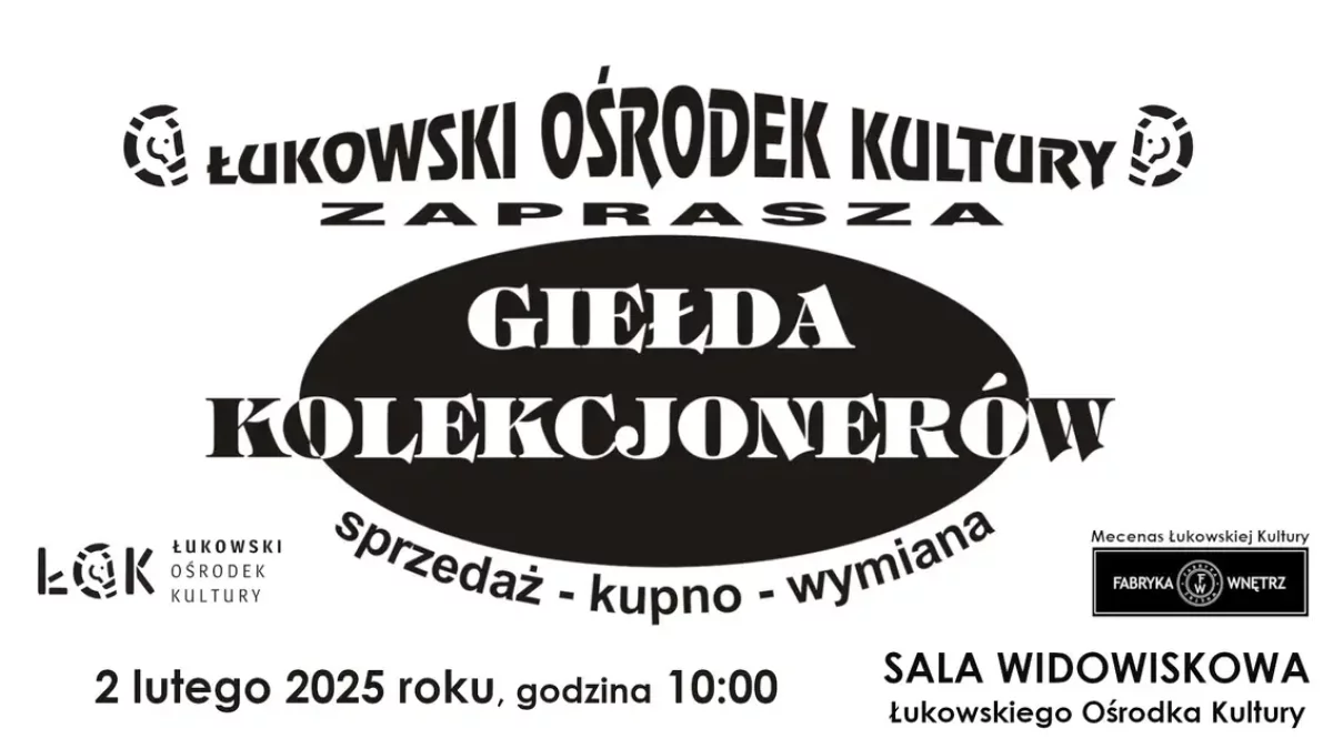 Już w niedzielę, 2 lutego 2025 roku o godzinie 10:00 w sali widowiskowej Łukowskiego Ośrodka Kultury odbędzie się kolejna edycja Giełdy Kolekcjonerów.