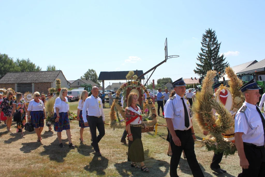 Po uroczystej Mszy Świętej Dziękczynnej, celebrowanej przez ks. Marek Wasilewskiego Zespół „Jagódki” ze Żdżar zaprezentował Obrzęd Dożynkowy. Starostowie Dożynek przekazali na ręce gospodarzy gminy chleb dożynkowy którym Wójt Mariusz Osiak oraz Przewodniczący Rady Gminy Tadeusz Federczyka podzielili się ze zgromadzoną publicznością. Skierowali oni także do rolników słowa podziękowania za ich trud codziennej pracy na roli oraz złożyli życzenia wszelkiej pomyślności. W okolicznościowych wystąpieniach głos zabrali obecni goście honorowi dożynek Poseł na sejm RP VIII kadencji Krzysztof Głuchowski oraz Starosta Łukowski Dariusz Szustek.