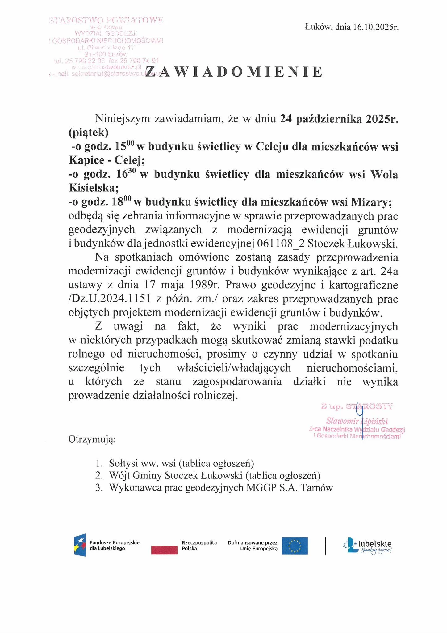 🕒 godz. 15:00 – świetlica w Celeju – dla mieszkańców wsi Kapice–Celej