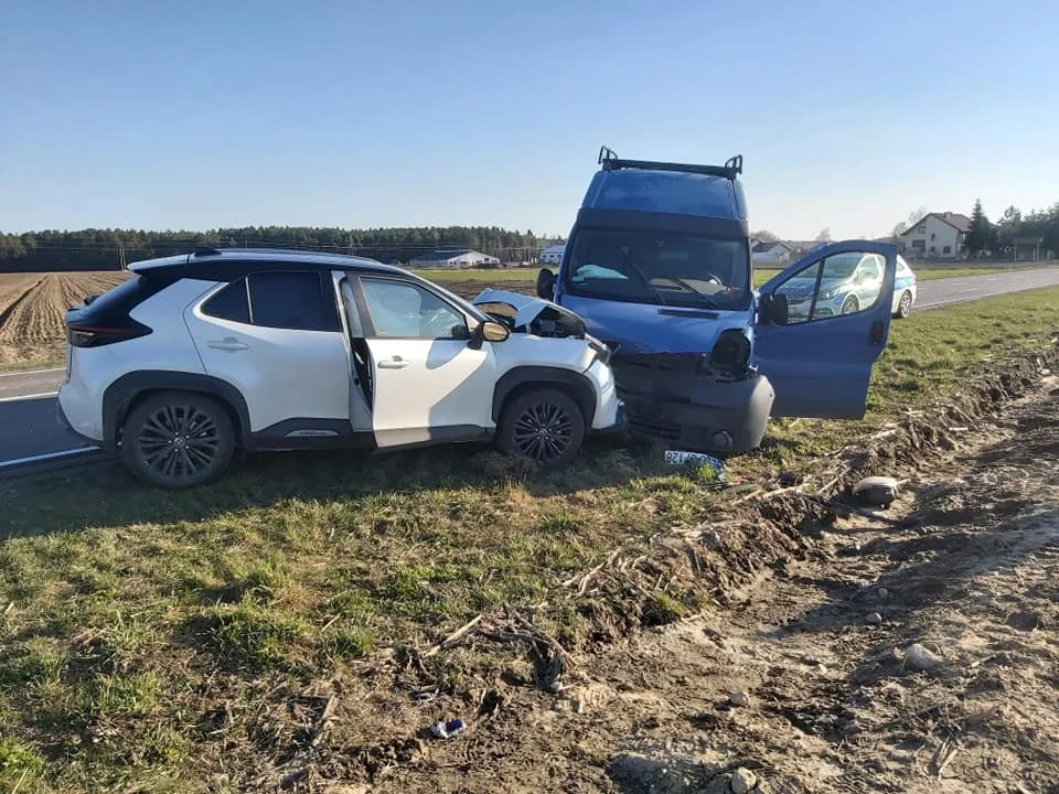 Samochodem osobowym podróżowała kobieta, a dostawczym dwaj mężczyźni. Jeden z nich doznał lekkiej rany prawego kolana - ratownicy odkazili ranę i założyli opatrunek osłaniający. Kobieta uskarżała się na ból pleców, w związku z tym został założony jej kołnierz ortopedyczny. Dalsze działania strażaków polegały na zabezpieczeniu miejsca zdarzenia, odłączeniu akumulatorów oraz uprzątnięciu jezdni z pozostałości po kolizji. Po przybyciu karetki przekazano poszkodowanych pod opiekę ratowników medycznych. Na miejscu zdarzenia interweniowały dwa zastępy z JRG Łuków, OSP Karwów, Policja oraz pogotowie.