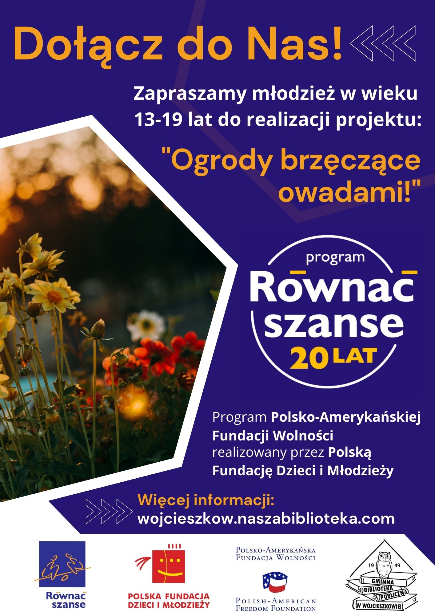 W grudniu program „Równać Szanse" ogłosił wyniki Regionalnego Konkursu Grantowego 2020. Wśród nagrodzonych grantem po raz drugi znalazła się Gminna Biblioteka Publiczna w Wojcieszkowie, która otrzymała 8,5 tys. zł na realizację projektu pt." Ogrody brzęczące owadami".