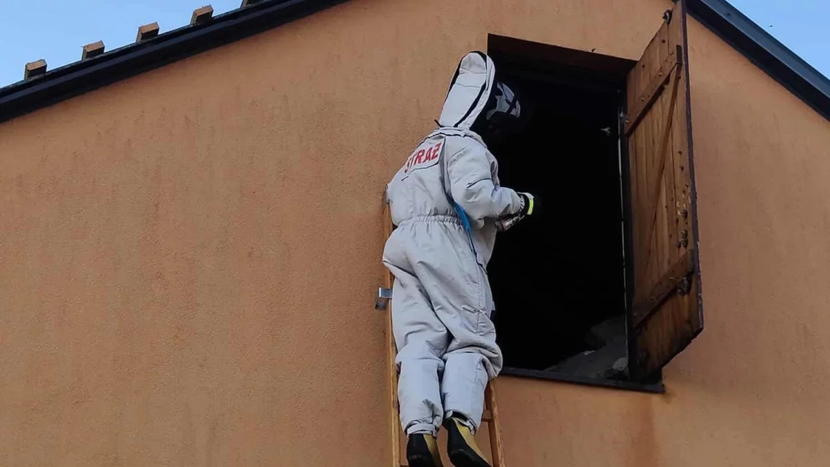 Zgłoszenie dotyczyło gniazda os, które pojawiło się w budynku przy miejscowej plebanii.