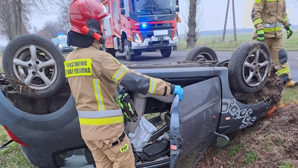 Na wysokości miejscowości Jeziory w gminie Łuków dachował samochód osobowy, którym poruszała się kobieta.