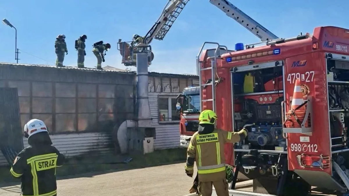 Ogień objął dach budynku, gdzie zapaliła się jego konstrukcja.