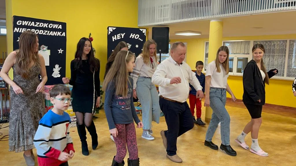 Koordynatorem i pomysłodawcą akcji był pan Sławomir Domański, wieloletni społecznik na terenie Łukowa i okolic, honorowy dawca krwi, wiceprezes Klubu HDK "Ostoja" który we współpracy z opiekunem samorządu uczniowskiego „Piatki” Katarzyną Sujką sprawił, że na twarzach wielu uczniów zagościł radosny uśmiech. Na uroczystość zostały zaproszone dzieci ze środowisk najuboższych lub poszkodowanych na skutek wojny na Ukrainie wraz z opiekunami . Przybyli również goście: Krzysztof Głuchowski-poseł na Sejm Rzeczpospolitej Polskiej, Krzysztof Koncerewicz- Kierownik Gazowni w Łukowie, których bardzo serdecznie powitała Iwona Kmieć – dyrektor szkoły. Prowadząca spotkanie Katarzyna Sujka poprosiła Sławomira Domańskiego o przedstawienie historii akcji. „ Gwiazdkowa Niespodzianka” jest częścią światowego przedsięwzięcia o nazwie Operation Christmas Child zainicjowanego przez organizację Samaritans Purse z USA, w ramach którego w zamożnych krajach świata przygotowuje się paczki dla dzieci (ok. 10 mln rocznie) i przesyła do 124 krajów, w tym do Polski. W naszym kraju akcja ta została zapoczątkowana w roku 1999 i polega na przekazywaniu upominków świątecznych dzieciom, szczególnie ze środowisk najuboższych lub poszkodowanych na skutek różnych wydarzeń losowych. Na uroczystości zaprezentowała się zdolna młodzież, która przygotowała krótką część artystyczną. Zebrani usłyszeli piosenkę pt.”Znów wędrujemy” w wykonaniu Amelki Skorupskiej z 8 b , podziwiali taniec Kushchy Yelyzavety z kl 8a do ukraińskiego utworu Khrystyna Soloviy – Trymai. Następnie przy akompaniamencie utalentowanej Niny Briukovej, przyjaciółki szkoły, ukraińskie uczennice z 8a zaśpiewały piosenkę “Ukraina to Ty”, oraz Hej Sokoły, czym porwały publiczność do wspólnej zabawy. Uczennice z samorządu uczniowskiego zatańczyły z publicznością dwa tańce: „Skrzypek” oraz „Jeruzalema”. Kulminacyjnym punktem uroczystości był moment wręczania, przez Mikołaja, prezentów przybyłym dzieciom. Każda paczka, a było ich 50 ,to niespodzianka, pięknie zapakowana, co wzbudzało ogromne zainteresowanie wśród uczniów. Na zakończenie imprezy były przemówienia zaproszonych gości, taniec pod kierunkiem Sławomira Domańskiego oraz słodki poczęstunek przygotowany przez samorząd uczniowski. „Gwiazdkowa Niespodzianka” sprawiła, że ferie dla niektórych dzieci rozpoczęły się z prezentem w ręku, a radosna atmosfera imprezy na długo zostanie w pamięci wszystkich gości.