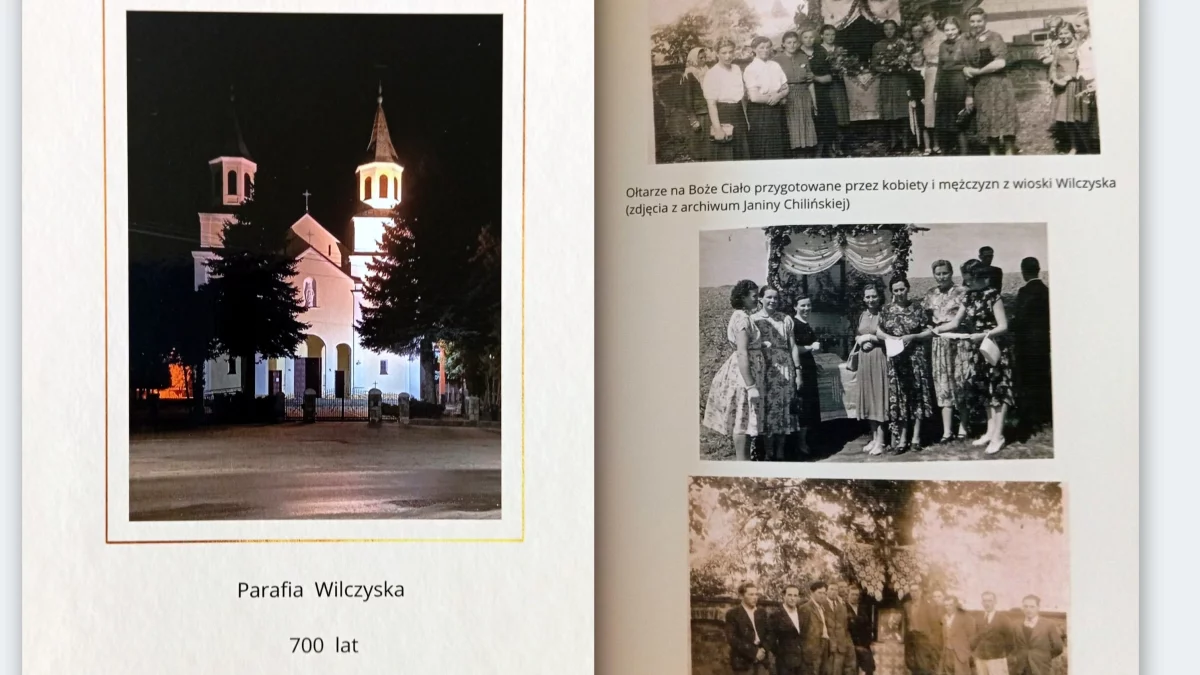 Album przybliża historię parafii, której początki nie są dokładnie znane. Najstarsze wzmianki pochodzą z lat 1325–1328, kiedy to parafia należała do archidiakonatu radomskiego w diecezji krakowskiej i obejmowała obszar około 171 km². Z dokumentów z lat 1335–1338 wynika, że parafia liczyła około 72 mieszkańców i odprowadzała opłatę świętopietrza w wysokości 3 groszy.Z 1505 roku zachowały się informacje o istnieniu drewnianego kościoła oraz o ówczesnym właścicielu Wilczysk – Janie Ciołku.
