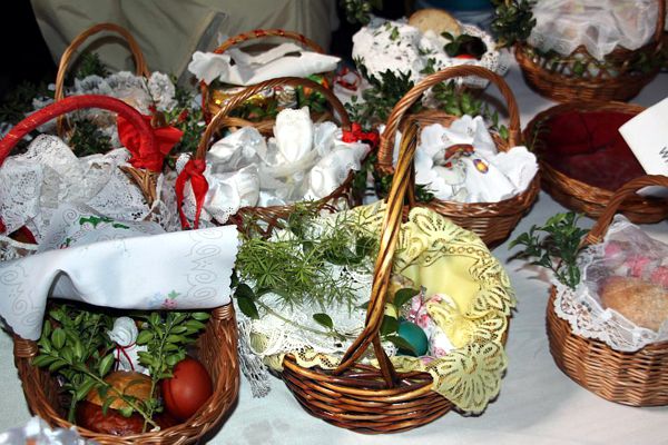 Błogosławieństwo pokarmów w kościele od godziny 8:00 do 12:00 – co 30 minut – w tym czasie również spowiedź, błogosławieństwo pokarmów w wioskach: