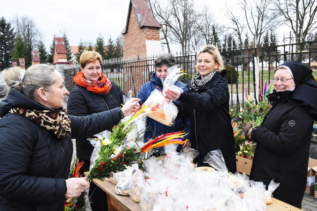 Stroiki i palmy wielkanocne wystawione na kiermaszu zostały wykonane w Domu Pomocy Społecznej Świętego Józefa. Organizatorami kiermaszu byli mieszkańcy i pracownicy Domu Pomocy Społecznej w Woli Gułowskiej oraz Wspólnota Sióstr Karmelitanek.