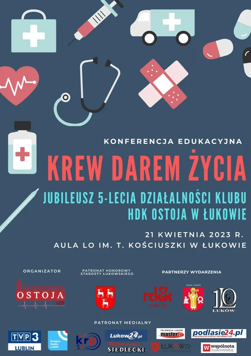 Oprócz prelekcji Klub HDK „Ostoja” w Łukowie podsumuje II Ogólnopolski Konkurs Plastyczny „Oddaj krew – ratuj życie” pod honorowym patronatem Ministra Edukacji i Nauki oraz Ministra Zdrowia. Tydzień przed terminem wysyłania prac, z całej Polski spłynęło ich ponad 500 ! Organizator zaprosił na swój jubileusz osoby, instytucje, organizacje pozarządowe, kluby HDK z którymi współpracuje. Podczas konferencji zostaną wręczone także odznaczenia dla osób zasłużonych. Patronat honorowy nad konferencją objął Starosta Łukowski. Partnerami wydarzenia są: RCKiK w Lublinie, Gmina Stanin oraz LO im. T. Kościuszki w Łukowie