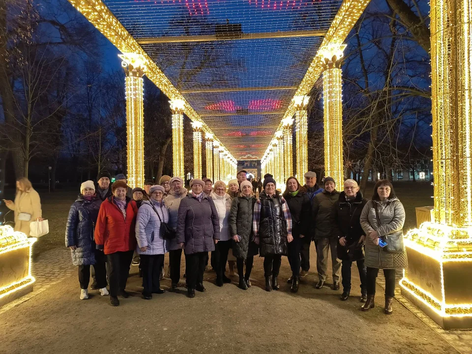 Nie zabrakło również spaceru po Królewskich Ogrodach Światła – niezwykłej, jesienno-zimowej wystawie plenerowej, która rozświetla historyczne ogrody przy pałacu w Wilanowie.