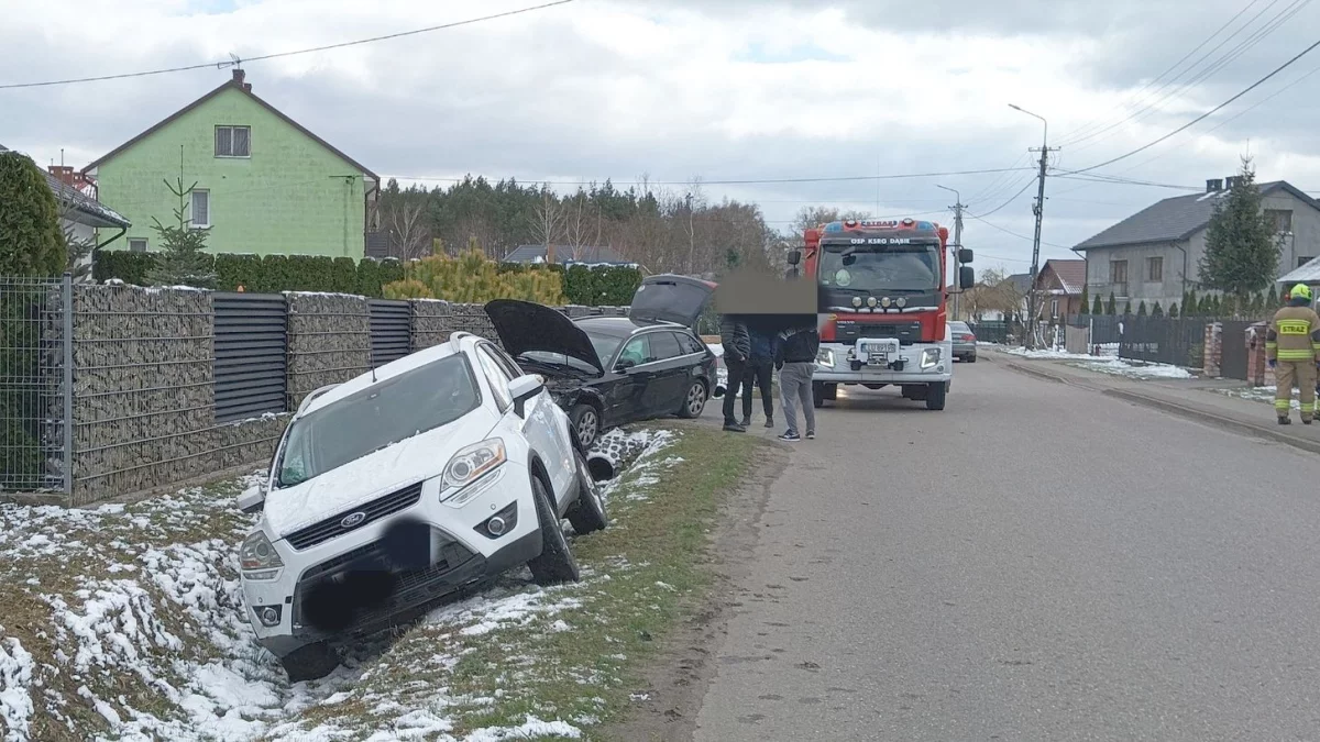 Według informacji przekazanych przez straż pożarną, w zdarzeniu brały udział pojazdy marek Ford i Audi. W wyniku zderzenia Ford wjechał do przydrożnego rowu.