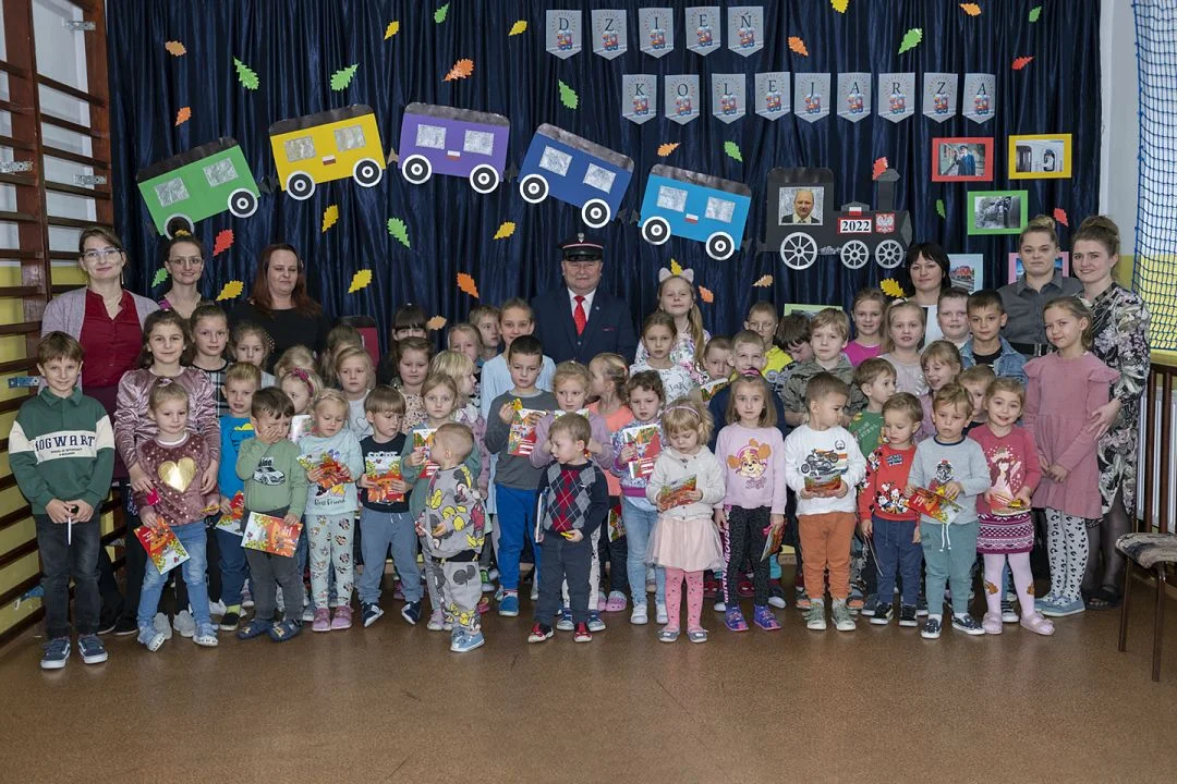 Dzieci na spotkaniu dowiedziały się jak wygląda praca kolejarzy. Na zakończenie Zbigniew Strzyżewski podarował wszystkim dzieciom upominki ufundowane przez dyrekcje Polregio w Lublinie oraz cukierki. (fot. Zbigniew Woźniak)