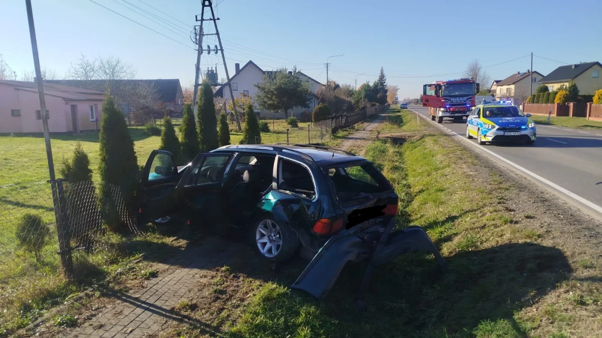 Kierująca samochodem marki Volvo, 29-letnia mieszkanka gminy Trzebieszów, najechała na tył pojazdu marki BMW, którym kierował 22-latek, również z gminy Trzebieszów. W wyniku zderzenia samochód BMW uderzył w ogrodzenie posesji.