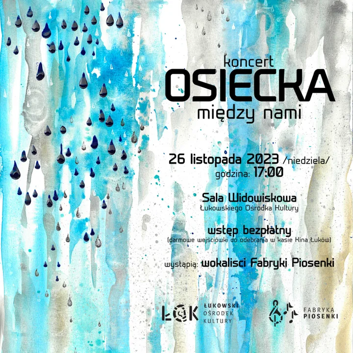 W niedzielę 26 listopada o godzinie 17:00 w sali widowiskowej ŁOK w muzyczną, sentymentalną podróż zabiorą nas wokaliści Fabryki Piosenki ŁOK. W ich najnowszym programie usłyszymy piosenki z tekstem wybitnej postaci polskiej muzyki rozrywkowej - Agnieszki Osieckiej. Usłyszymy doskonale znane wszystkim przeboje jak: „Okularnicy", „Niech żyje bal", „Zielono mi", czy „Ludzkie gadanie". Sama artystka powie też do nas kilka słów.