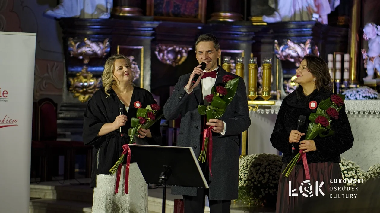 - Wspaniałym koncertem patriotycznym „Moja Niepodległa" uświetniliśmy w Łukowie obchody Święta Niepodległości. 11 listopada 2024r. w Kościele pw. Podwyższenia Krzyża Świętego wystąpili artyści Polskiej Opery Kameralnej, dawnej Warszawskiej Opery Kameralnej, estrady i scen warszawskich: Joanna Ewa Zaniewicz (mezzosopran), Joanna Stefańska Matraszek (sopran), Janusz Tylman (fortepian i kierownictwo muzyczne), Robert Szpręgiel (baryton) oraz Wojciech Malina Kowalewski (instrumenty perkusyjne i bas). To było wyjątkowe wydarzenie, które z pewnością natchnęło wszystkich uczestników duchem patriotyzmu. Koncert „Moja Niepodległa" był wspaniałym zwieńczeniem obchodów Święta Niepodległości w Łukowie - informuje ŁOK.