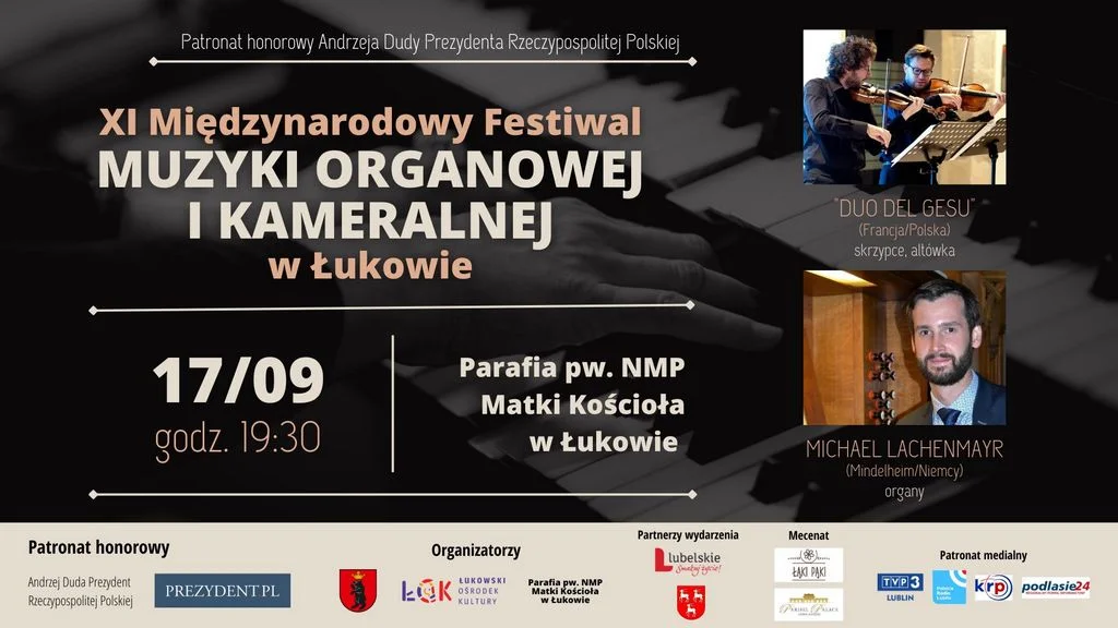 Patronat Honorowy nad XI Międzynarodowym Festiwalem Muzyki Organowej i Kameralnej w Łukowie objął Prezydent Rzeczypospolitej Polskiej Andrzej Duda.