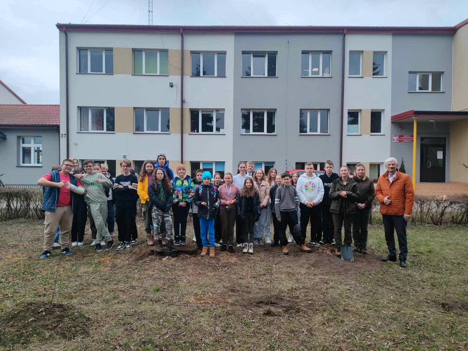 Następnie uczniowie, nauczyciele i zaproszeni goście wysłuchali prelekcji pani leśnik Karoliny Barc i pani leśnik Magdaleny Kryska na temat roli drzew w przyrodzie i życiu ludzi. Na koniec odbyła się symboliczna ceremonia zasadzenia przez gości i uczniów 6 nowych drzew na trawniku przed budynkiem szkoły.