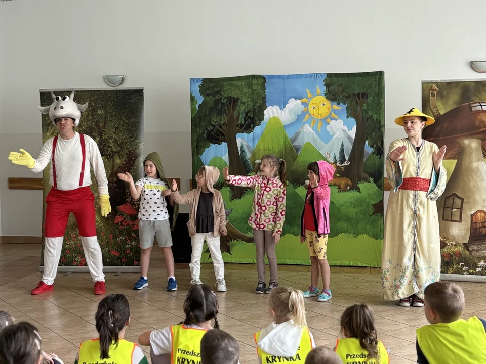 Uczniowie z klas „0” oraz 1-4 ze Szkoły Podstawowej w Krynce spotkali się z bohaterem wykreowanym przez Kornela Makuszyńskiego. Koziołek jak się okazało nie do końca jest Matołkiem, a w podróży do Pacanowa odwiedza kraje, w których wszyscy mówią po angielsku.