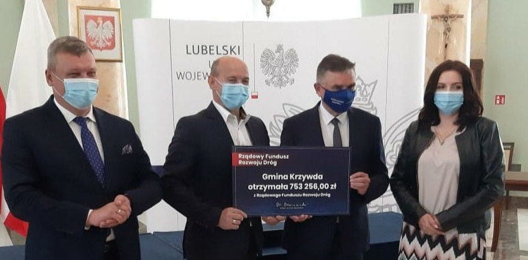 Informacje łukowskie15 września w Lubelskim Urzędzie Wojewódzkim w obecności wojewody Lecha Sprawki, wicewojewody Roberta Gmitruczuka, wójt gminy Krzywda Krzysztof Warda oraz skarbnik Małgorzata Kłosińska podpisali umowy na dofinansowywanie ze środków Rządowego Funduszu Rozwoju Dróg.