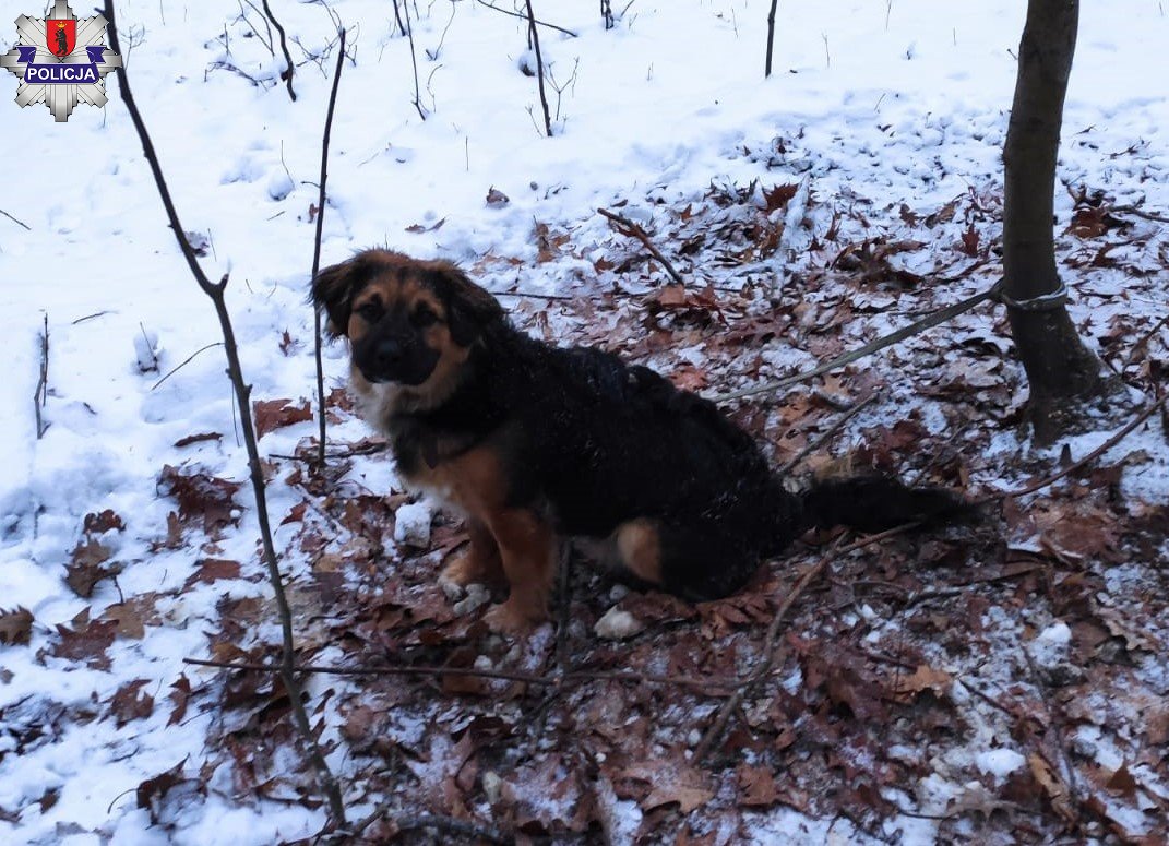 Wczoraj po południu dyżurny łukowskiej komendy został powiadomiony przez 19-letnią łukowiankę o porzuconym w pobliskim lesie psie. Ze zgłoszenia wynikało, że najprawdopodobniej minionej nocy ktoś przywiązał czworonoga do drzewa.