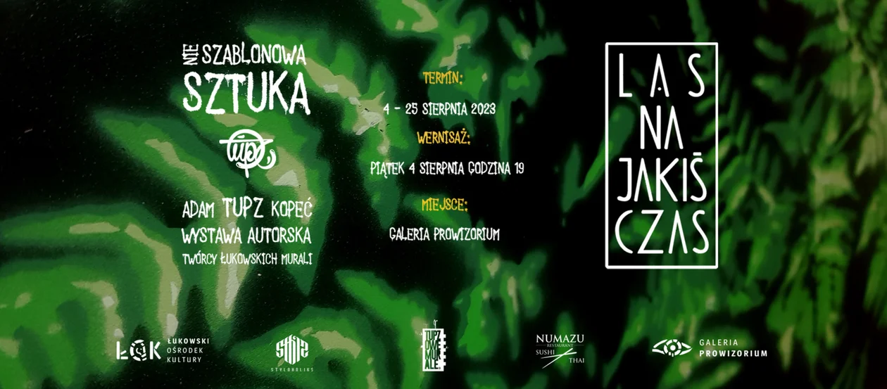 - Już wkrótce otworzymy pierwszą, sierpniową wystawę w Galerii PROwizorium. Tym razem zobaczymy nieco mniej oczywistą i klasyczną sztukę - street art. A to za sprawą jednej z najbardziej znanych regionalnych postaci tego nurtu - Adama Tupza Kopcia - relacjonuje Bartosz Leśkiewicz z Łukowskiego Ośrodka Kultury.